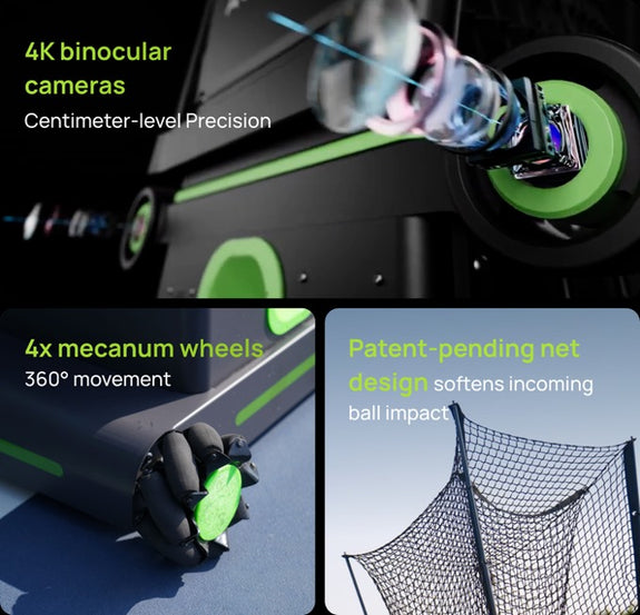 With AI visual tracking, 4x metal-core Mecanum wheels with rubber treads, and a ball net, it moves and rallies like a real partner—no wearables or setup needed. Just hit and play.
