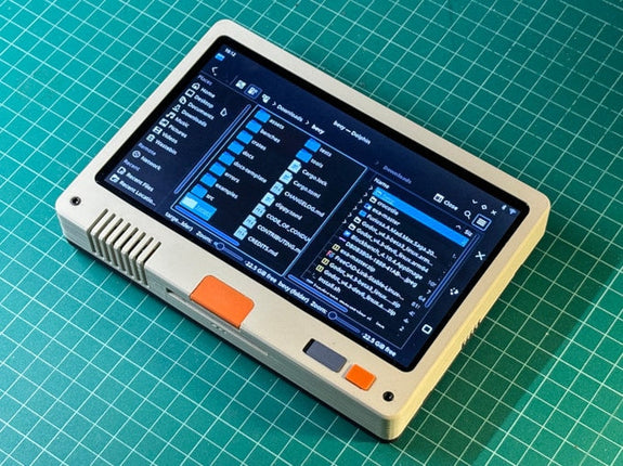 Modular PC 5 is the compact console variant, combining retro charm with modern functionality. It features a 5-inch touchscreen, versatile input devices, and a thumb-typing-friendly keyboard (layout still in development). Powered by open-source QMK firmware, the keyboard is fully customizable, making Modular PC a hackable handheld perfect for on-the-go or in-bed computing.