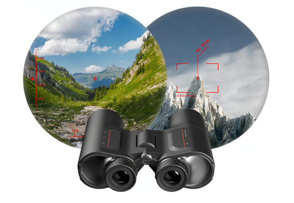 GPS with inertial measurement unit (IMU): The binoculars use your phone's GPS location and are outfitted with IMUs. When combined with our unique software, this setup ensures exact positioning and low drift orientation by combining data from gyroscopes, gravity, and the earth's magnetic field.